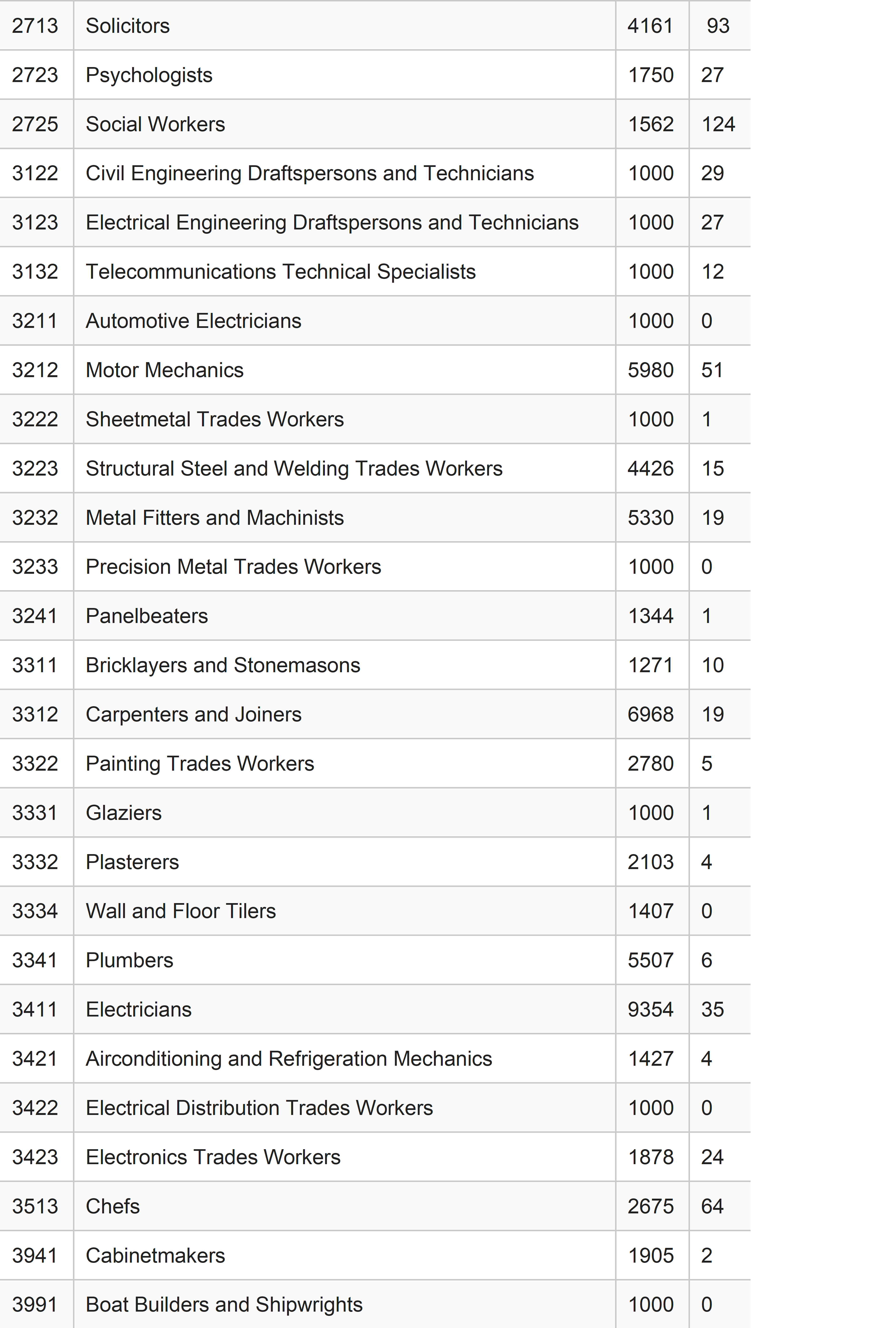 QLD: 基本上QLD有三種清單分別是Living in Queensland (subclass 190) & (subclass 489) Offshore (subclass 190) & (subclass 489), Queensland Postgraduate – Masters or PhD (subclass 190)。大部分的擔保條件都是要申請人已經有QLD的job offer才有辦法申請。在海外申請人類別上,除了IT相關還有廚師相關必須拿到QLD的job offer之外,其他職業只要是在QLD的職業清單上+滿足要求條件就可以申請。