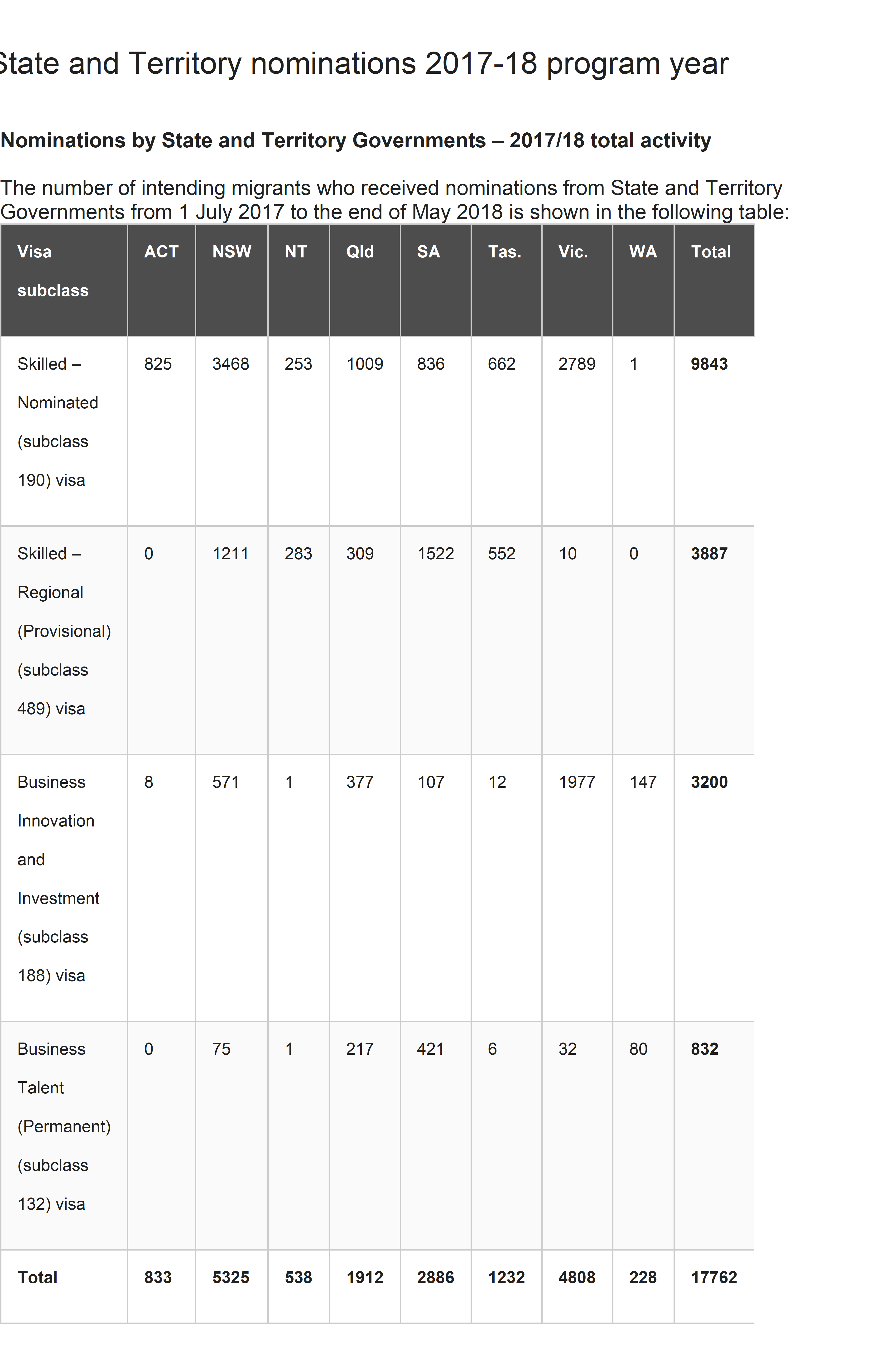 NT: 因為NT人口少,所以基本上NT的政策很明確,除非是NT本州的畢業生(至少滿足2年學習),或是已經在NT有工作並且有未來12個月的聘書,否則海外申請人要拿到NT的擔保有很大的困難度。NT還有一個缺點是審核時間漫長,遞交申請之後,至少3個月以上的等待期,更有甚者要等到6個月以上才知道是否成功。